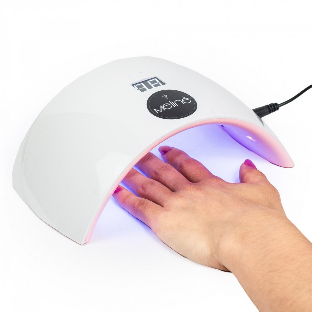 Posee un revolucionario sistema de encendido automático cuando se introduce la mano de la clienta. El contador automático indica la cantidad de tiempo que transcurre con un máximo de 90 segundos. La luz de encendido se apagará una vez transcurrido el tiempo