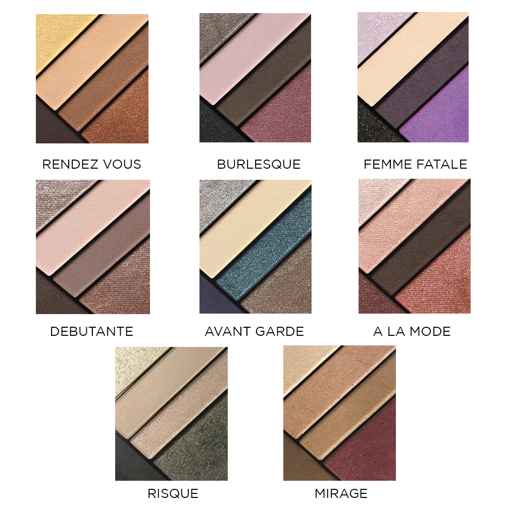 Estas paletas cuentan con una fórmula única de líquido a polvo que envuelve la piel en una rica y aterciopelada capa de cristales iluminadores. Cada paleta profesionalmente personalizada está especialmente diseñada para intensificar los ojos, con combinaciones de color tanto de día como de noche.