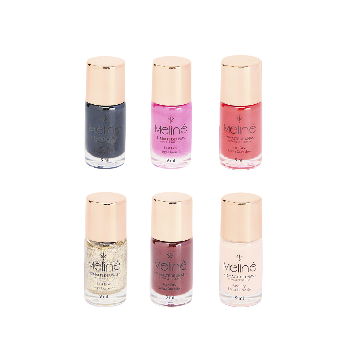 Combo x6u. de Esmaltes Color Larga Duración Hipoalergénico x9ml Meliné