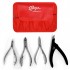 Cuatro alicates profesionales para minicuría en un hermoso y cómodo estuche para guardar estas herramientas.