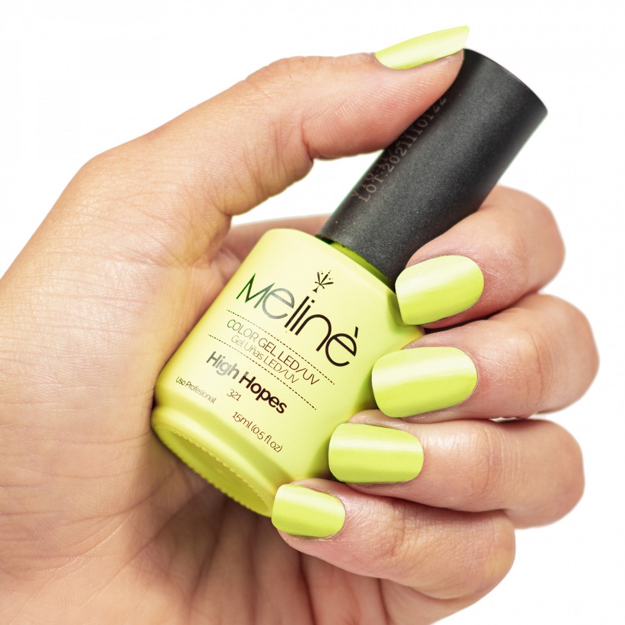 Esmalte Color Semipermanente Gel para cabinas LED/UV. El esmalte Meliné posee más de 20 variaciones de color y un impresionante poder cubritivo.